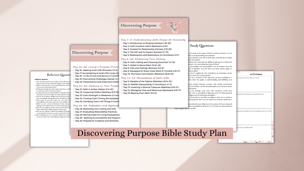 This free printable Bible reading plan is focused on the topic of Discovering Purpose - Unveiling God's Plan For Your Life.