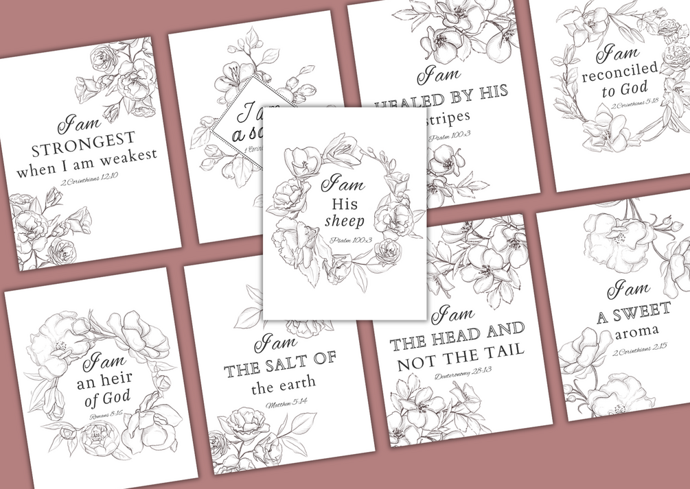 This 19-page I Am - My Identity In Christ printable coloring book invites you to embark on a creatively colorful journey to meditate on Scripture and be reminded of your true identity in Christ! These floral coloring pages are enjoyable and easy to print at home.