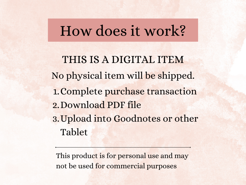 You will receive 3 files to download after purchase: a full PDF of the digital notebook, and two printable versions in A4 and letter size for use on a home printer.