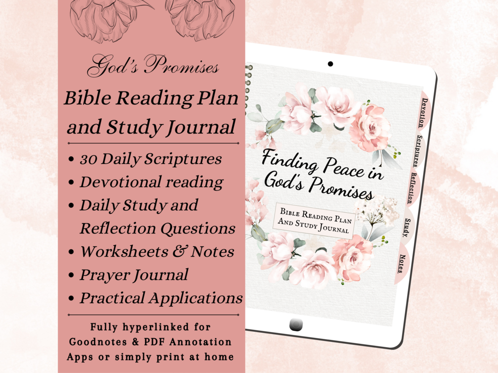30-Day Bible Reading Plan - Promises Of God - PDF file to upload into Goodnotes, Noteshelf, or other tablet read program, - PDF file to download and print at home