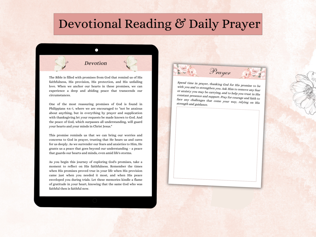 This Bible Study will take you through a comprehensive study of various promises of peace, provision, comfort, guidance, and redemption found in God's Word. Each day focuses on a specific promise with accompanying scriptures to delve deeper into understanding and applying these promises in daily life.