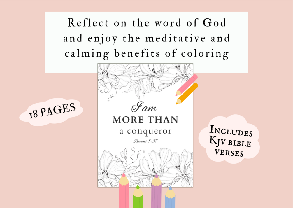 These floral coloring pages are enjoyable and easy to print at home. Each page is accompanied by a bible verse from the King James Version.